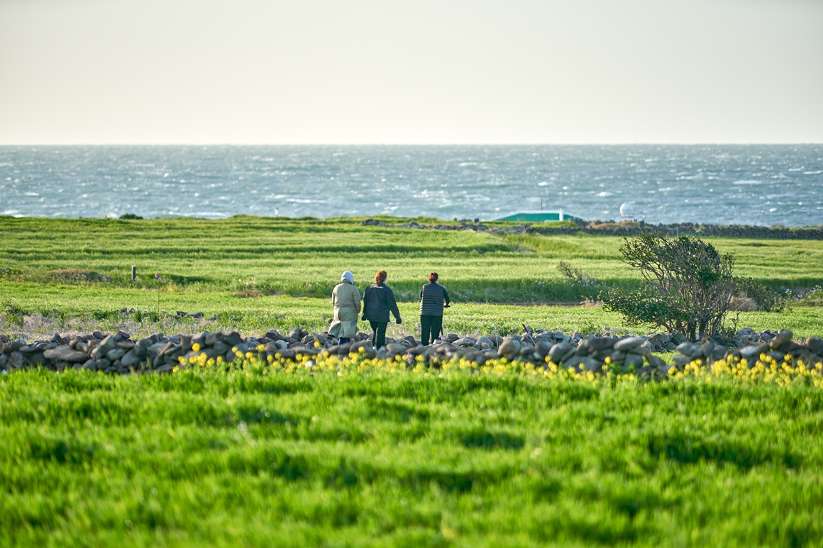 가파도의 넓은 청보리밭을 거닐며 봄의 정취를 만끽할 수 있습니다.